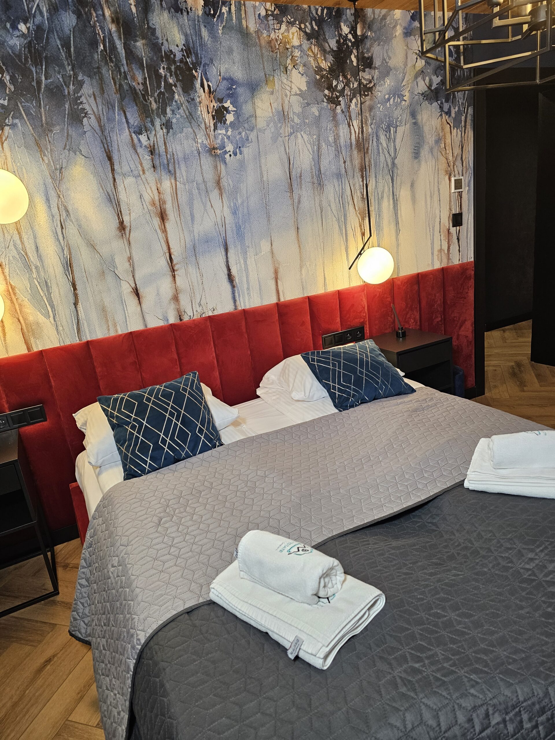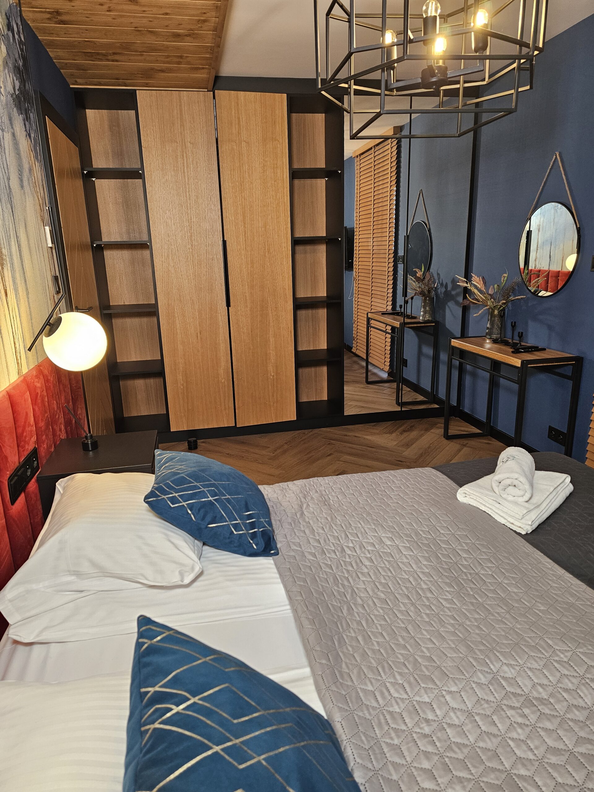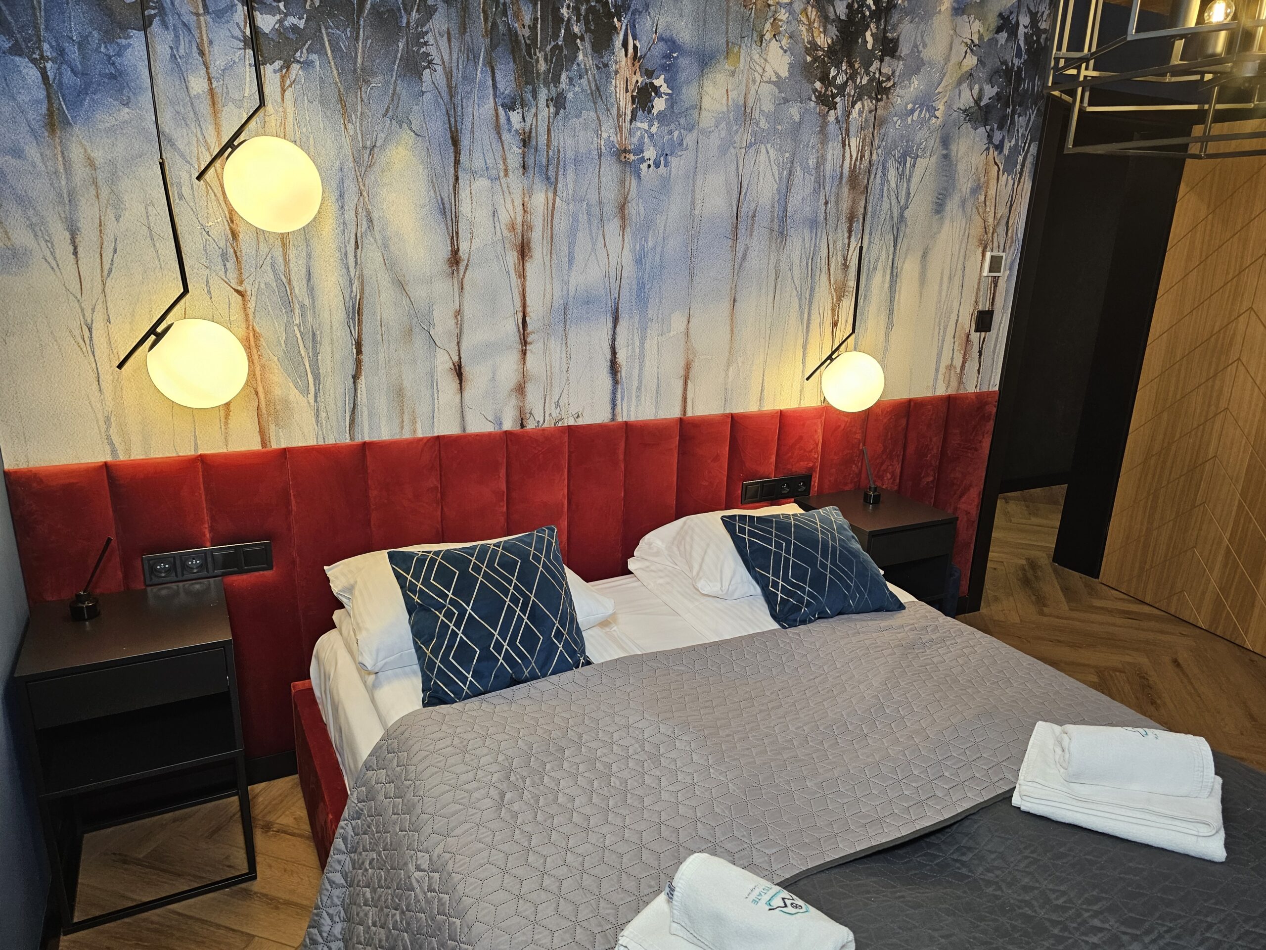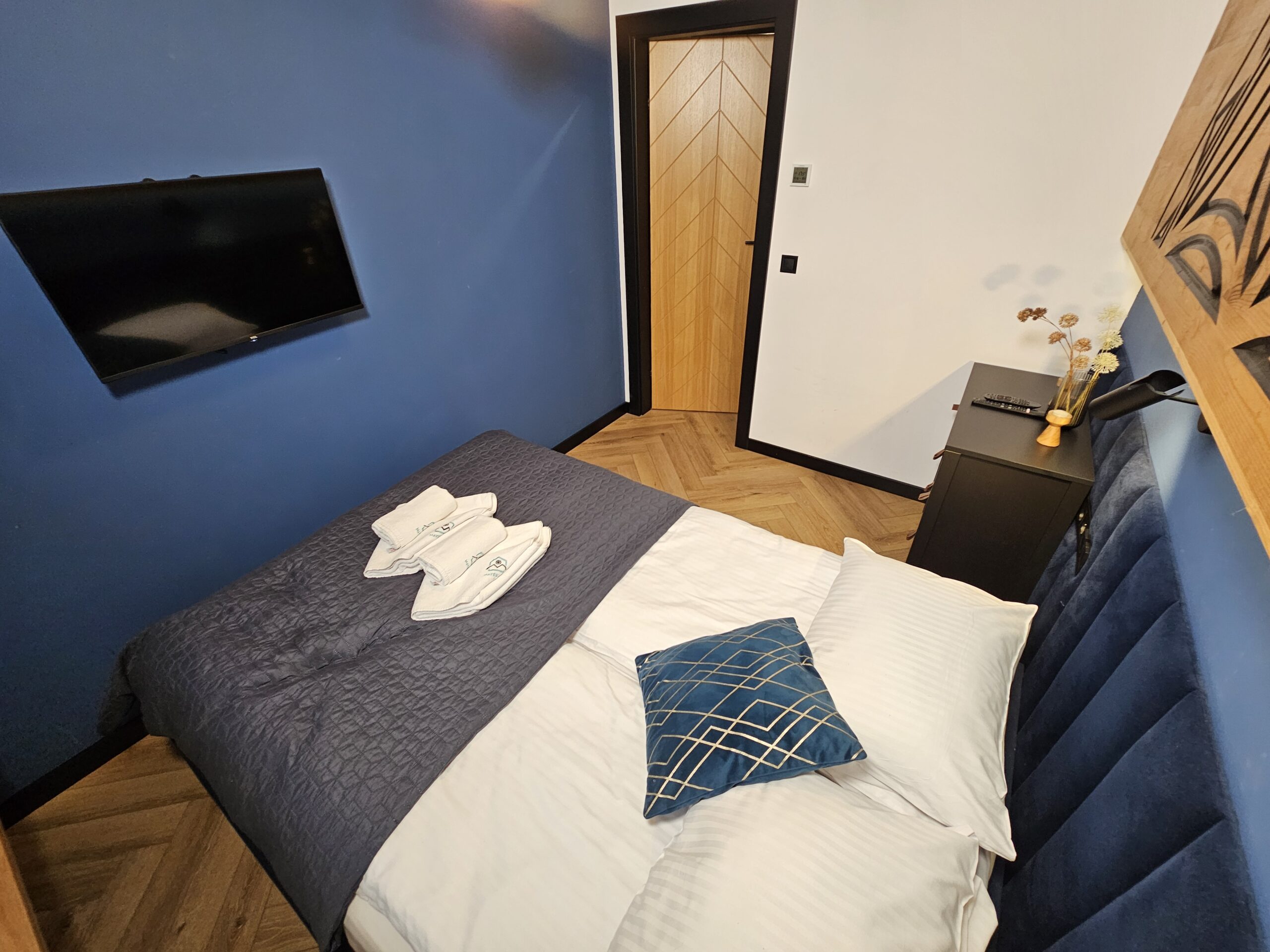 Przytulny apartament o powierzchni 49 m2 składa się z: przestronnego salonu z nowoczesnym telewizorem oraz rozkładaną sofą, w pełni wyposażonego aneksu kuchennego połączonego z częścią jadalnianą, stylowej łazienki z kabiną prysznicową oraz eleganckiej sypialni z dużym podwójnym łóżkiem. Dla zmotoryzowanych Gości przed budynkiem przygotowano miejsce parkingowe. Dodatkowym atutem jest możliwość zaparkowania samochodu w garażu podziemnym. Wypoczywający na czas pobytu mają dostęp do prywatnego balkonu, na którym są usytuowane meble do wypoczynku.